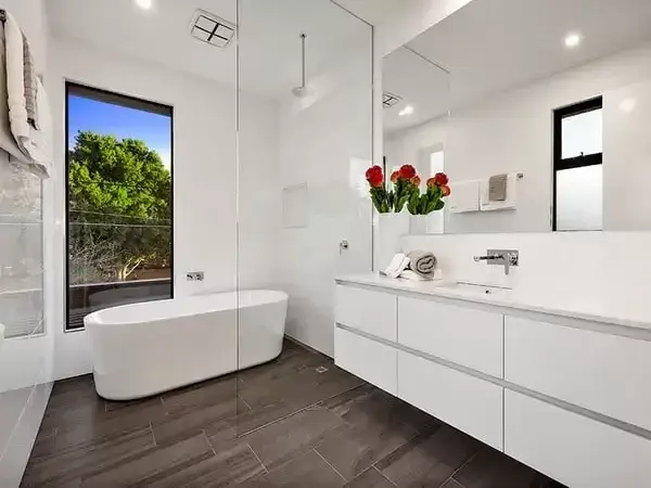 In Elsternwick, it is easy to love a bold modern look and still worry about privacy, warmth and natural light. This contemporary home answers that with a striking concrete facade and carefully placed glazing, paired with timber flooring throughout to keep the interior feeling grounded and welcoming. The kitchen is designed to work hard every day, with a skylight over the benchtop and a butler’s pantry that keeps clutter out of sight. In the main suite, the ensuite bath is positioned with relaxation in mind, turning a routine into a genuine wind down at the end of the day.