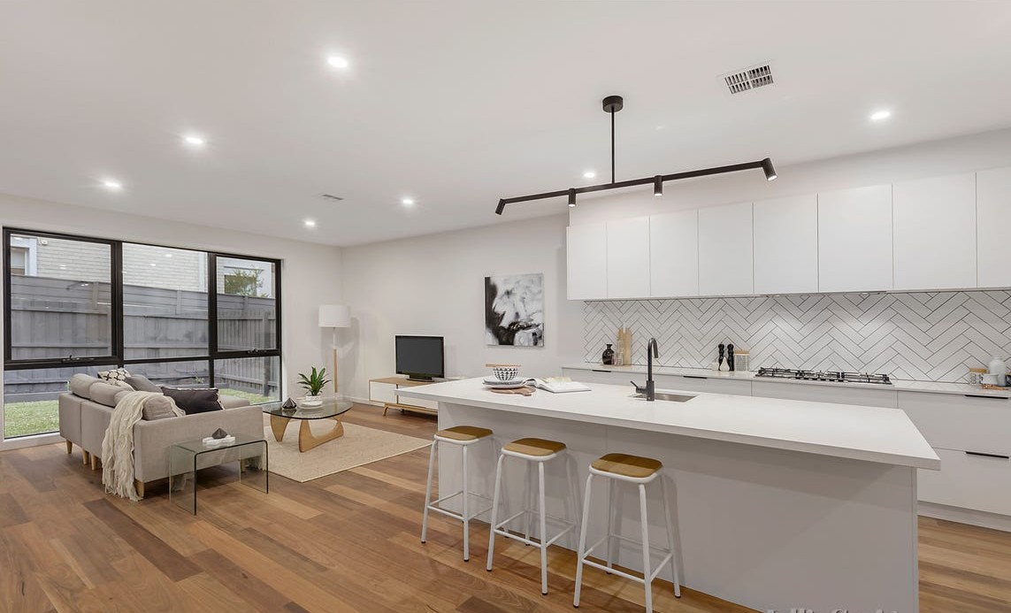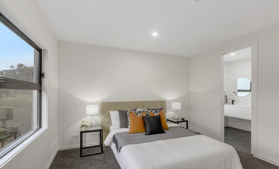 Townhouse builds in Melbourne often come with two common worries. Will it feel secure and private from the street, and will the entry work day to day. Mt Waverly 3 addresses those concerns with a clear street presence, a sheltered entry recess, and a generous garage approach that keeps arrivals simple. The facade uses a calm mix of light and dark render, so the architecture feels modern without feeling loud. A timber feature at the front door adds warmth and gives you an extra layer of screening while still keeping the entry welcoming. We focus on the small details that reduce stress for you, with a clear process and consistent communication throughout the build.